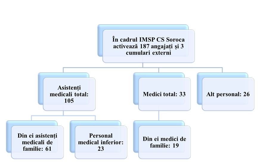 Necesitatea în medici de familie și asistenți ai medicului de familie utilizînd datele referitor la numărul funcțiilor scriptice, numărul funcțiilor ocupate și numărul persoanelor fizice lucrători de bază în funcțiile ocupate pentru anul 2024, 19 medici de familie au activat pe 25,5 funcții, numărul funcțiilor scriptice au fost de 26,5 unități. Necesitatea în medici de familie este calculată prin diferența dintre numărul funcțiilor scriptice și numărul persoanelor fizice.