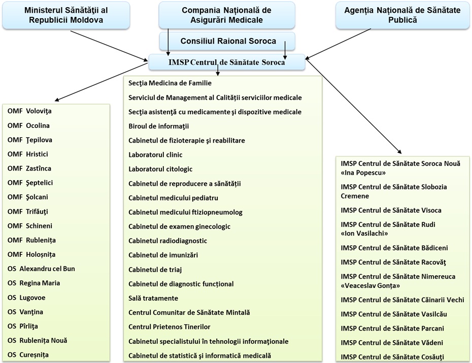 În componența IMSP CS Soroca activează 11 OMF și 7 OS: